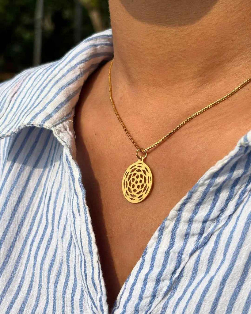 Discover the perfect balance of style and spirituality with our stunning gold-plated Flower of Life pendant. This intricate geometric design symbolizes creation, unity, and infinite possibilities, making it a meaningful addition to your jewelry collection.
