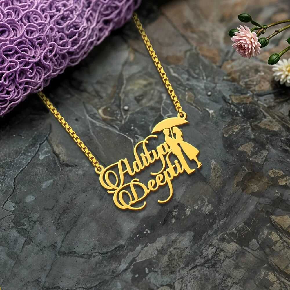 Are you looking to express your love in a unique and meaningful way? The Custom Gold Name Necklace Couples is a stunning piece of jewelry designed to celebrate your relationship. Featuring a beautiful umbrella pendant, this necklace combines elegance with personalization, making it the best gift for anniversaries, weddings, or just because.